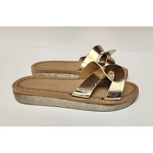 Bamboo Gold Metallic Flat Sandals Size 5.5.