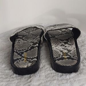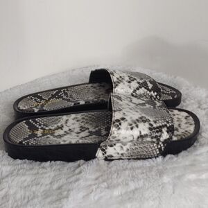 These gray, black and white faux snakeskin Bamboo "Riley" jelly slides are a size 7. They have cushioned insoles for comfort. Pre-owned and in like new condition. All offers welcome.