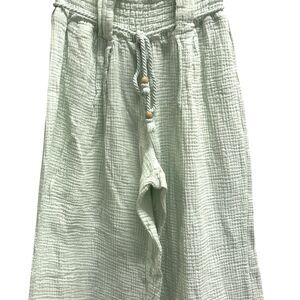 Ban Jara Anthropologie 100% Cotton Pull-On Gaucho Wide Leg Belted Pants Size M