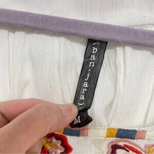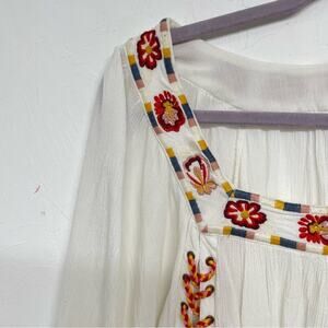 Ban Jara White Copped Puff Sleeve Floral Embroidered Boho Blouse M