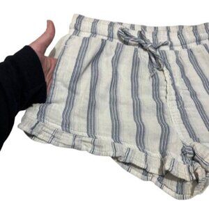 BanJara Womens Blue & White Striped Paperbag Tie Front Cotton Shorts S