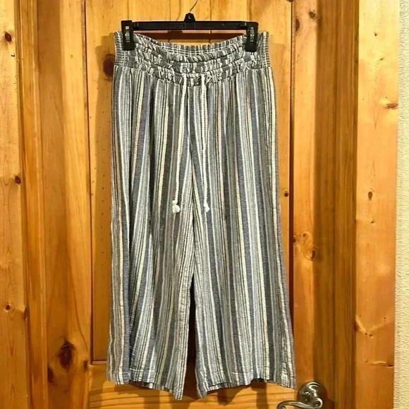 Excellent pre owned condition. Very comfortable wide leg, beautiful colored stripes size Large