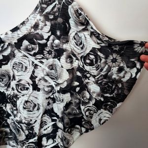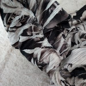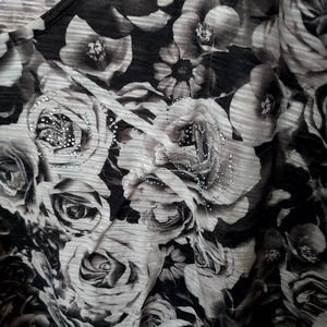Really cool and lovely rose graphics cold shoulder top with rhinestones. There is no size tag, but it seems like a medium measurements in photos. Stretch elastic sides.