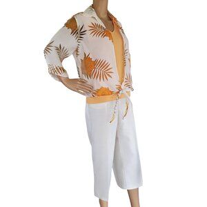Banana Bay 3 Piece Women's M Tropical Resort Wear Set Apricot Tank Blouse Capris