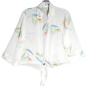Banana Bay Fine Resort Wear Wrap Womens Size S White Floral Tie Front