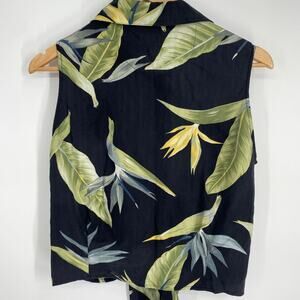 Banana Bay Top Women’s Medium Silk Knot Tie Front Tropical Palm Print Resortwear