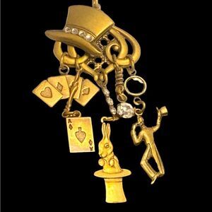 In the 1980’s Banana Bob earrings were known for their use of vintage snd unique findings and unusual stones. This pair of wonderful and unusual earrings are one of the kind of theme earrings that they were known from, ox gold findings accented with Swarovski crystals. These are new they were samples that I acquired at trade shows when I showed my own line of jewelry. The earrings are fabulous, they measure appropriately 3.5” in length and are 1.5” in width. Please see all photos for full details.