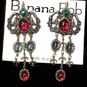 Banana Bob Moghul theme chandelier earrings Ruby emerald sapphire glass clips