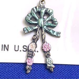 Beautiful pastel enamel Banana Bob floral XS bow theme earrings, beautiful colors perfect for so many occasions, wonderful bridal or romantic date night earrings! 2.25” long, pierced. Please see all photos for full description.