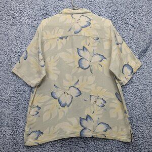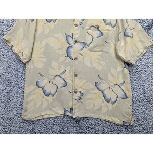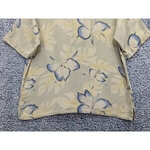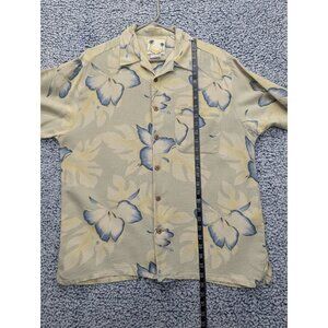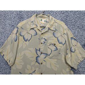 Banana Cabana 100% Silk Hawaiian Button Up Shirt Mens LG Floral Tropical Beige