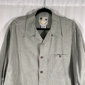 Banana Cabana Silk Hawaiian Shirt Men's XXL Green Floral Button Up Short Sleeve