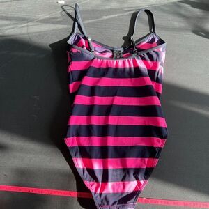 Banana Moon Pink Blue Striped WireBra One Piece Swimsuit Womens Size 40 / S