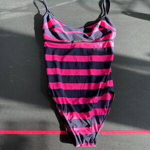 Banana Moon Pink Blue Striped Stretch One Piece Swimsuit Womens Size 40