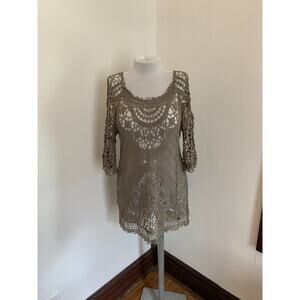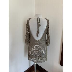 Banana Moon Short Shift Mini Dress Crochet Olive Mesh Eyelet Backless Beach Boho