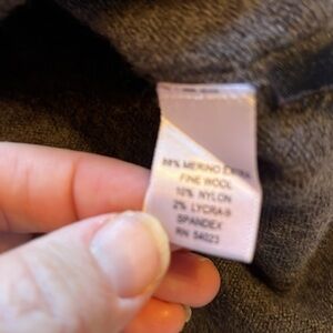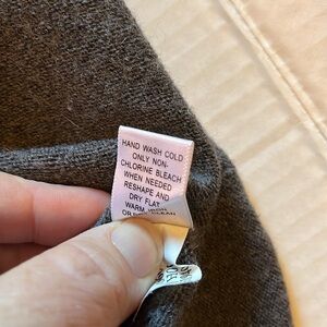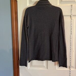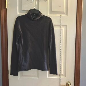 Banana Public-M-gray-extra fine Italian Moreno wool turtleneck, pullover sweater. 88% Moreno, extra fine wool, 10% nylon, 2% spandex. Capsule wardrobe piece. Looks like it’s been sewn in two places one on the back near seem, one in the front. see last 2 photos (one upfront you can’t even see it). See photos for approximate flat measurements. Seems like it would be a small instead of a medium.