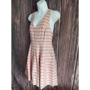 Banana Republc Linen Blend Stripped Tan Coral Fit and Flare Dress Size 4
