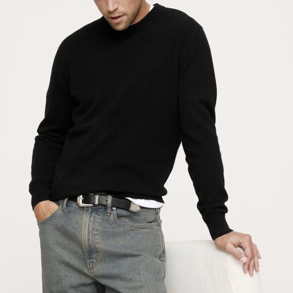 Banana Republic 100% Cashmere Crew-Neck Sweater Long Sleeve Black Size Large