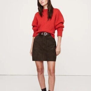 A luxe and timeless Banana Republic genuine leather skirt in a rich chocolate brown. Features a structured A-line silhouette, front patch pockets, belt loops, and full lining for comfort. High-quality leather with a classic, polished look — perfect for fall/winter styling with tights, boots, or a chunky knit.