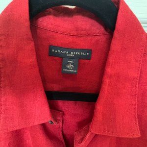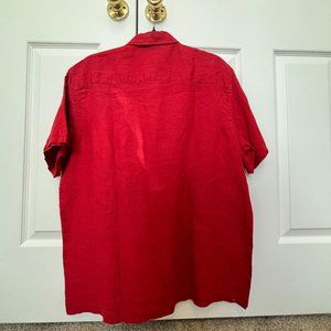 Red, 100% Linen, Made in India, Size Large. No tears, snags, holes or stains. Lightly worn, just needs a touch from a steam iron and its good to go! Perfect for casual spring and summer wardrobe.