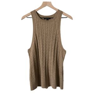 Banana Republic 100% Merino Wool Cavo Cable Knit Sweater Tank Khaki Tan Size XL