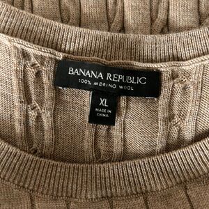 Banana Republic 100% Merino Wool Cavo Cable Knit Sweater Tank in Khaki Tan. Excellent used condition with no flaws. Size XL.