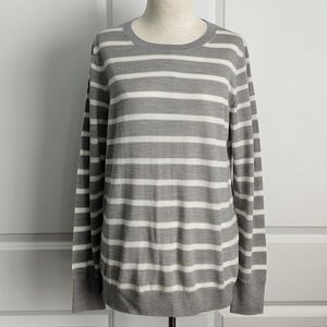 Banana Republic 100% Merino Wool Lightweight Crew Neck Stripe Grey White L NWOT
