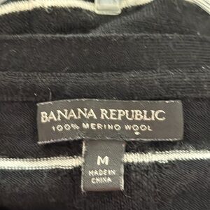 Banana Republic 100% Merino Wool V-neck Sweater Black w/white stripes Sz Medium