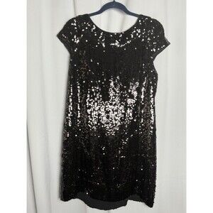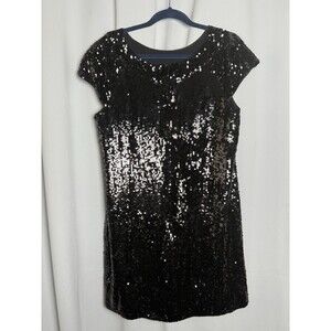 Banana Republic 100% Silk Black Sequin Shift Mini Cocktail Dress Sz 14 New