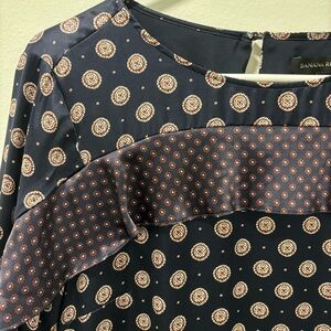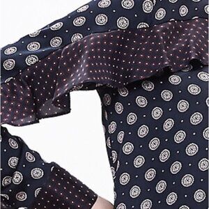 Banana Republic 100% Silk Foulard Long Sleeve Shift Mini Dress Blue Red Ruffle