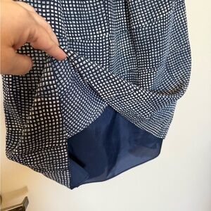 Like new 100% silk short sleeve mini dress. Lined. Flowy sleeves. Zip back with hook and button closure. Geometric style print making this dress perfect for work, an event, or a night out.