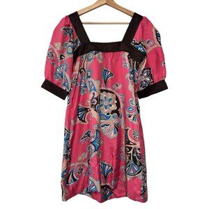 Banana Republic 100% Silk Pink Floral Y2K Dress Square Neck Pockets Short Small