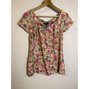 Banana Republic 100% Silk Pink Gray Short Sleeve Flowy Top Sz XSP
