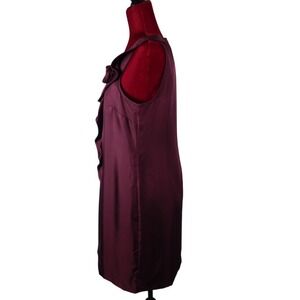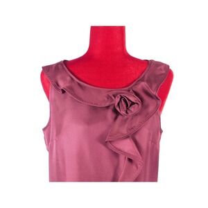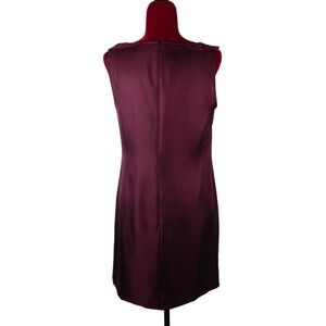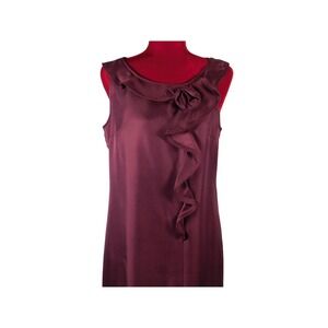 The Banana Republic 100% Silk Sheath Lined Cocktail Dress in size 10 is a stylish and elegant option for parties or cocktail events. The dress features a solid purple color with a ruffle accent, a sleeveless design with a scoop neck and zip closure. Made of a luxurious blend of polyester and silk, this knee-length dress is perfect for the summer and spring seasons. With its chic sheath style and lined interior, this dress by Banana Republic is sure to make a statement at any special occasion.