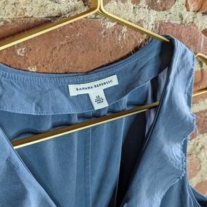 Banana Republic 100% Silk Size 14 Blue Grey Button Front Dress w/ Elastic Waist