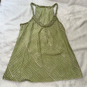 Banana Republic 100% Silk Womens Green Cream Patterned Tank M Woven Trim Y2K VTG