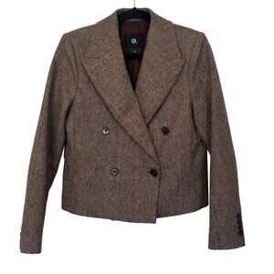Banana Republic 100% Wool Brown Tweed Cropped Double-Breasted Blazer - Size 2