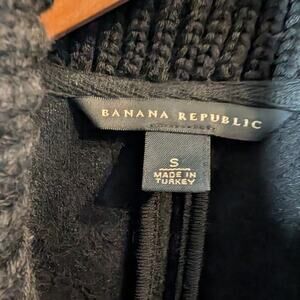 Banana Republic 100% Wool Long Cardigan Black Shawl Collar Belted Sweater Small