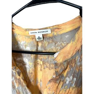 Banana Republic 100% silk pleated detail button front short sleeve Sz M