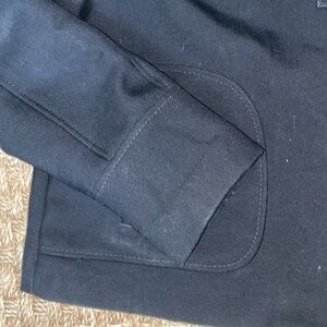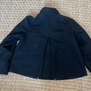 Banana Republic 100% Wool Black Jacket. Long sleeve, Stand up collar with button close detail pockets on front. Pleat in the back. Lined. Classic style. Swing coats on Paris Fashion Week Runways. And this one is 100% wool!!