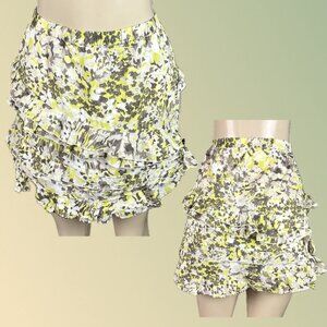 ITEM: Banana Republic 14 Brown-Chartreuse Floral Layered Ruffle Elastic Waist Mini Skirt