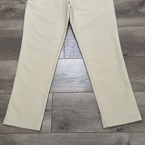 Banana Republic 30” Flat Front Tan Casual Golf Pants Size 34. New with tag! 100% polyester. Stretch lightweight performance fabric. Front zipper closure. Front and back pockets. Right side zipper pocket. Labeled 34/30. Inseam measures closer to 29”. See pictures measurement.