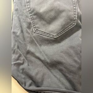 Elegant charcoal trousers with a slim fit. Ideal for versatile styling. Some light fading on back pocket area from normal wear. Buttery soft fabric