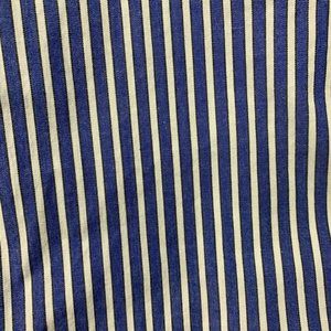 Blue with white stripes, lined. Cotton/spandex blend - has some stretch.