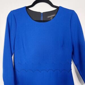 Banana Republic 4P Blue Scalloped Waist Sheath Dress 3/4 Sleeve Double Face