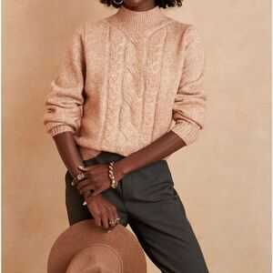 Banana Republic 713965-1 Women's Sz Small Camel Brown Cable Knit Sweater