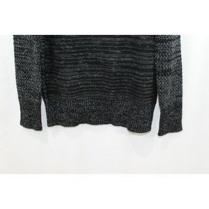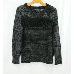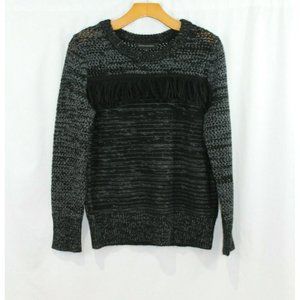 Banana Republic $98 Womens Black Grey Wool Blend Fringe Trim Sweater S NWT