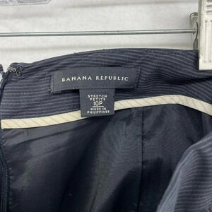 Banana Republic A-Line Mini Skirt Sz 10P Navy Pin Striped Stretch Pleated Lined