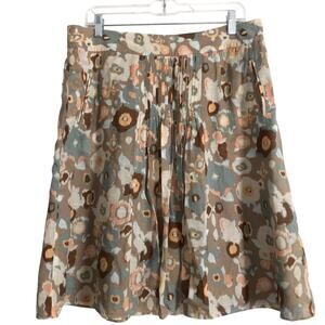 Banana Republic Abstract Floral Brown Multicolor Knee Length Pleated Skirt
