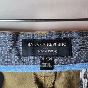 Banana Republic Aiden Chino Pants Men 35x34 Khaki Tan Flat Front