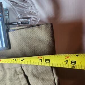 The Banana Republic Aiden Chino Pants in khaki tan are a versatile and stylish choice for men. Made from comfortable cotton material with a stretch for added flexibility, these flat front pants feature a solid pattern and a zip closure. With a regular fit and size 35 waist, they are suitable for various occasions such as travel, weddings, casual outings, workwear, and business meetings. The classic beige color and pockets add practicality to the dress pants, making them a timeless addition to any man's wardrobe.